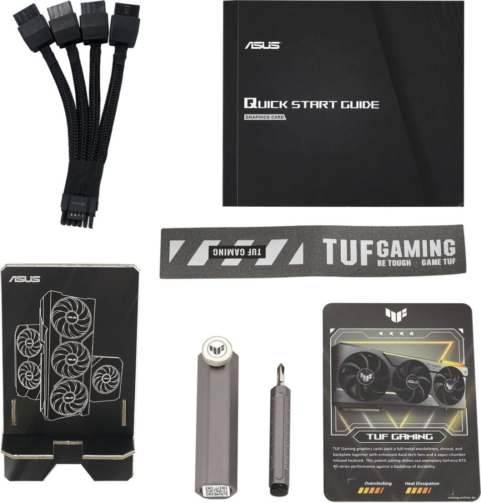 - Комплект поставки: 1 x коллекционная карта1 x руководство по настройке 1 x кабель питания1 x держатель видеокарты TUF 1 x липучка с петлей TUF1 x открытка с благодарностью