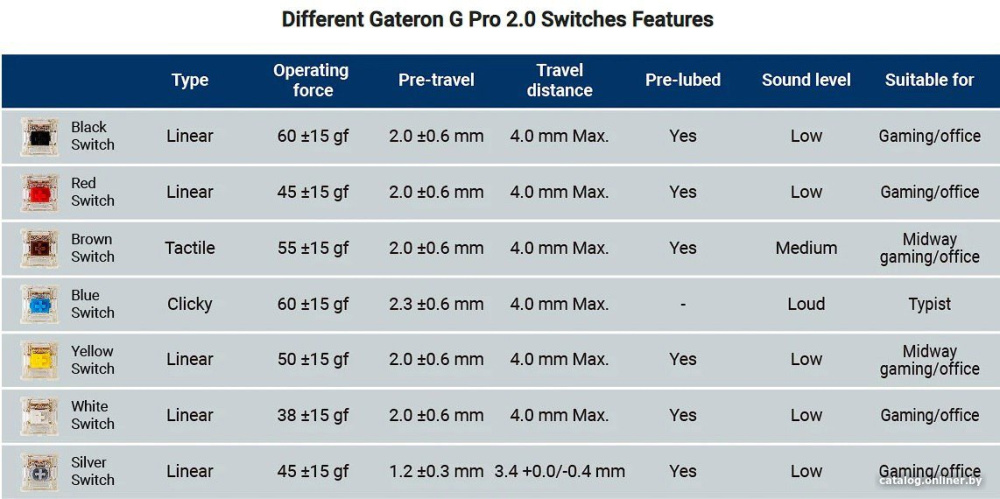 - Наименование переключателя: Gateron G Pro Red 2.0